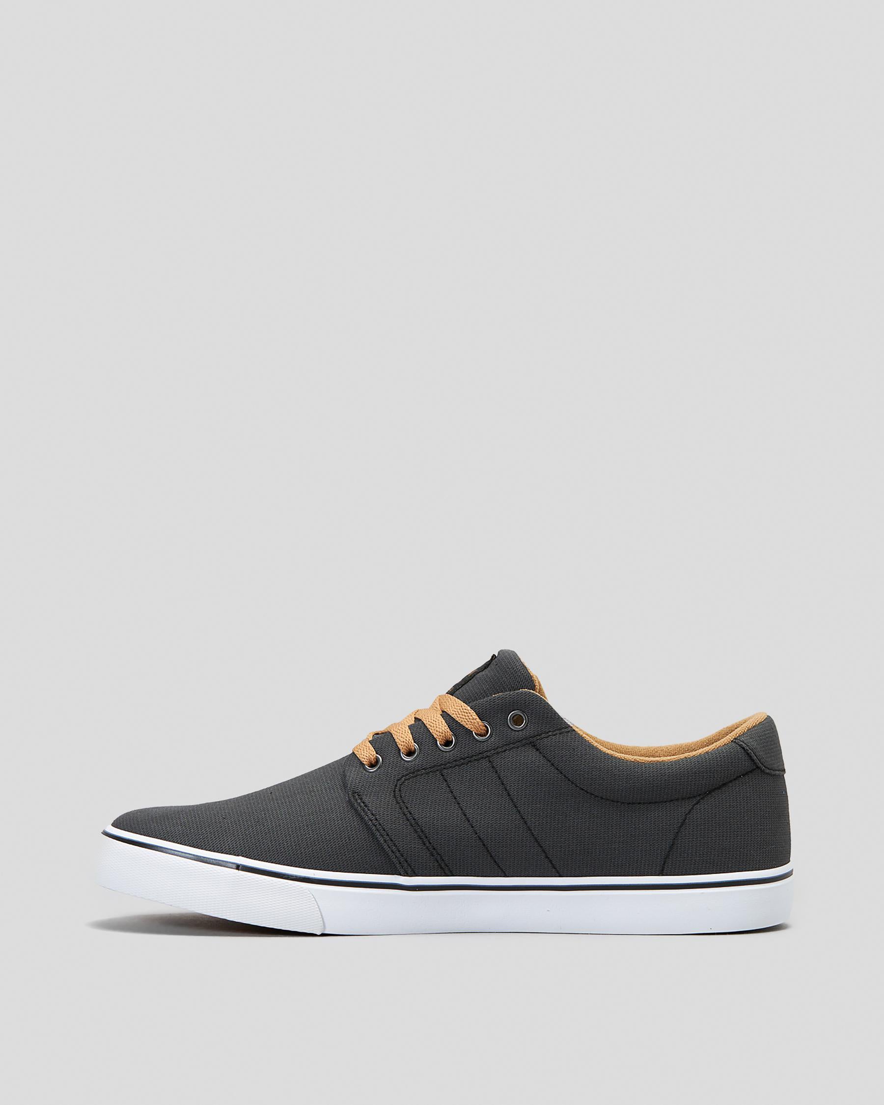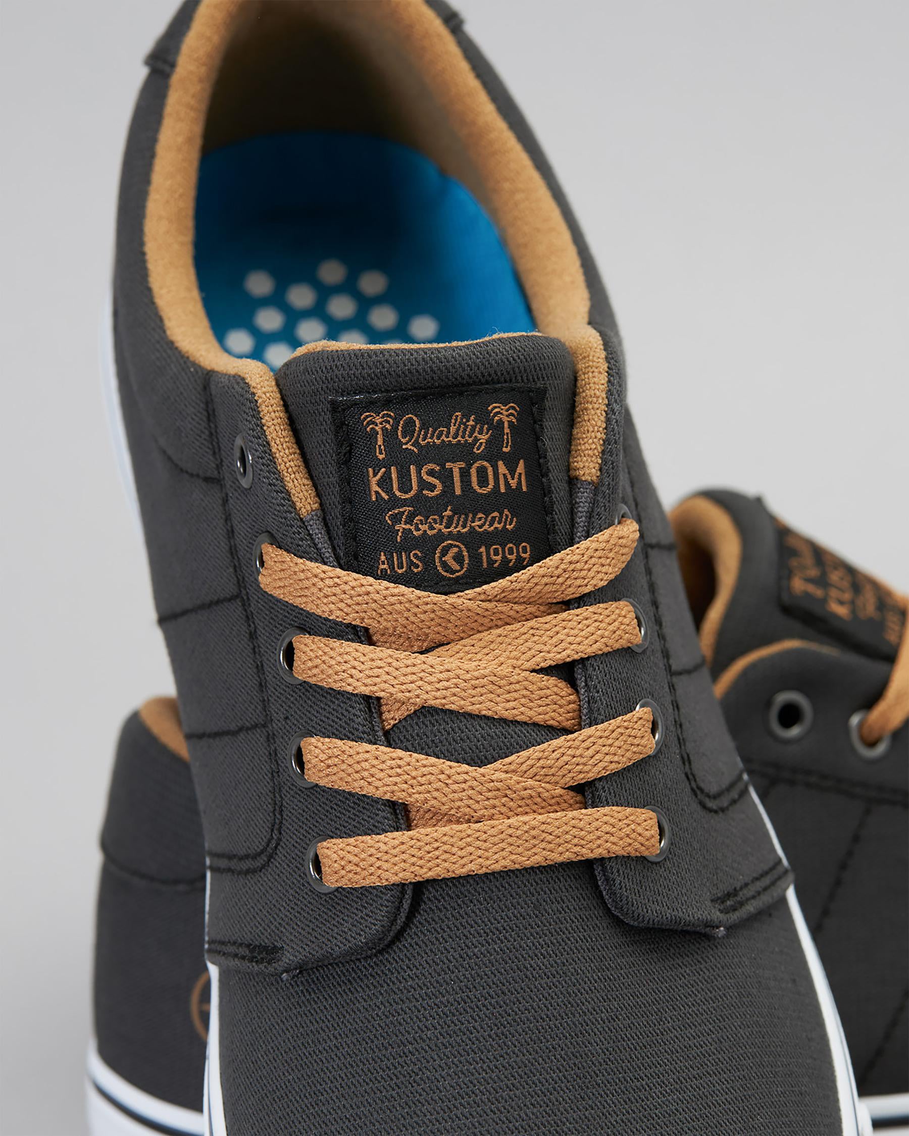 Product Description: Step out in style with these Kustom Layday Shoes in black. The sleek design with tan accents adds a touch of sophistication to any outfit.
