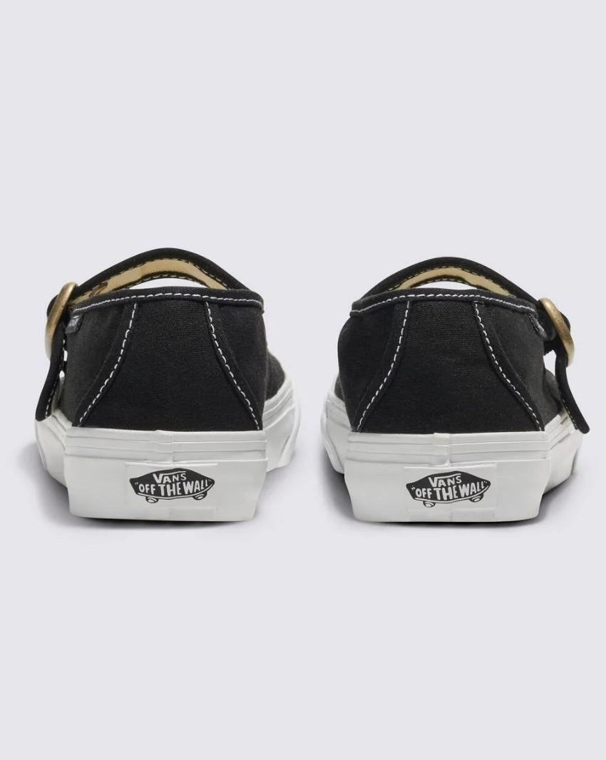 A Classic Mary Jane Silhouette gets the Vans Treatment. Tapping into retro nostalgia and a playful interpretation of femininity, the Vans Mary Jane takes this timeless silhouette and cranks it up a notch. Pairing a simple buckle and strap with a rubber toe cap, contrast stitching, and our signature rubber waffle outsole, the Mary Jane delivers the perfect blend of casual and classy, ideal for . . . well, just about anything.
